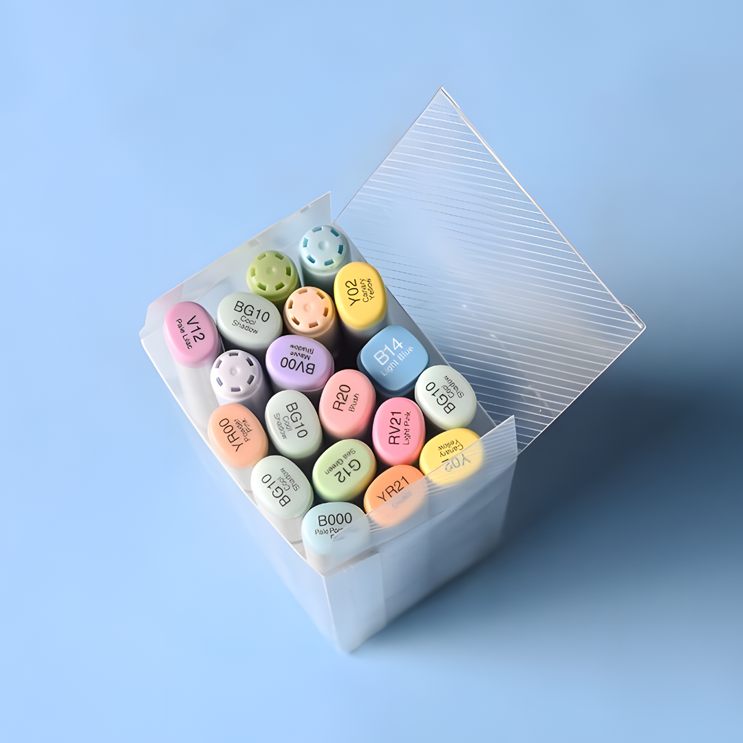 Akvarellmarkers är däremot transparenta och vattenlösliga. De fungerar ungefär som akvarellfärger i pennformat: du kan teckna direkt på papper och sedan tillföra vatten med en pensel för att skapa flödiga övergångar och mjuka färgskiftningar. Det gör dem särskilt uppskattade av illustratörer och kreativa som gillar att experimentera med toningar, skuggor och levande färgspel.