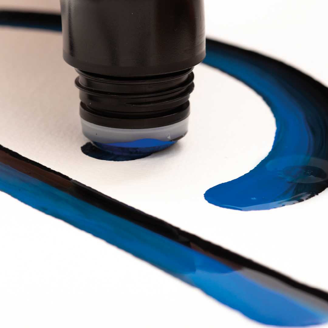 Färgen i Poscas markers är vattenlöslig och därför möjlig att spädas med vatten, precis som vanlig akrylfärg. På så sätt kan du skapa gradienteffekter. Innan färgen har torkat använder du en blöt pensel och spär ut färgen för att skapa en gradient effekt.