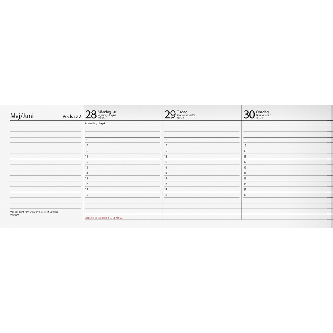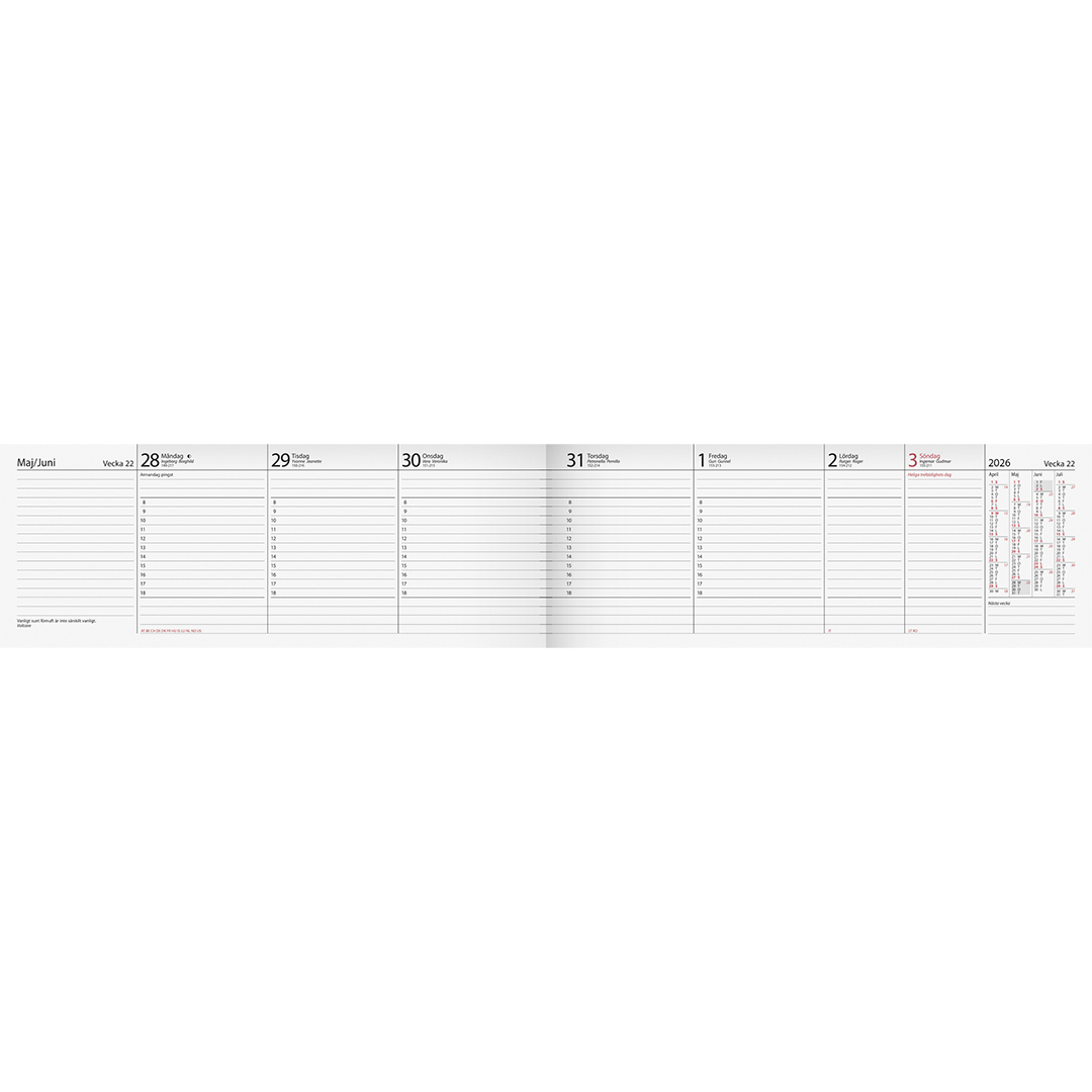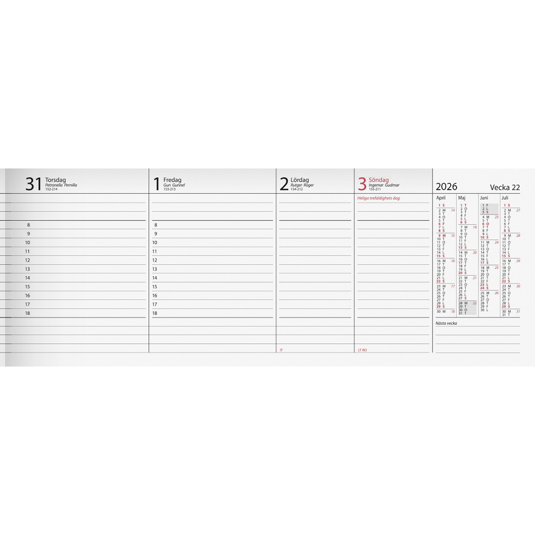 - Layout: Vertikala dagar, 1 vecka per uppslag