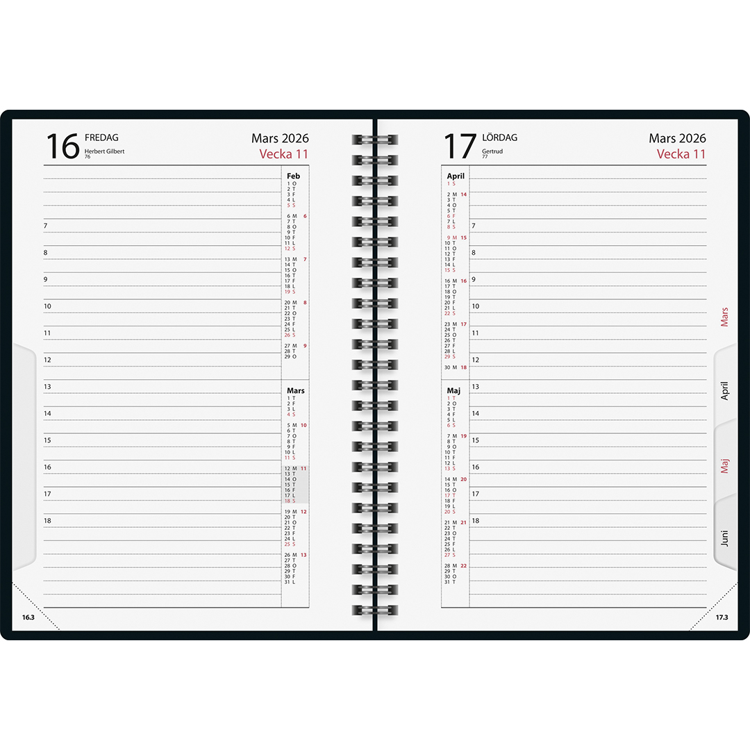 Kalender Timdagbok Svart Wire-O