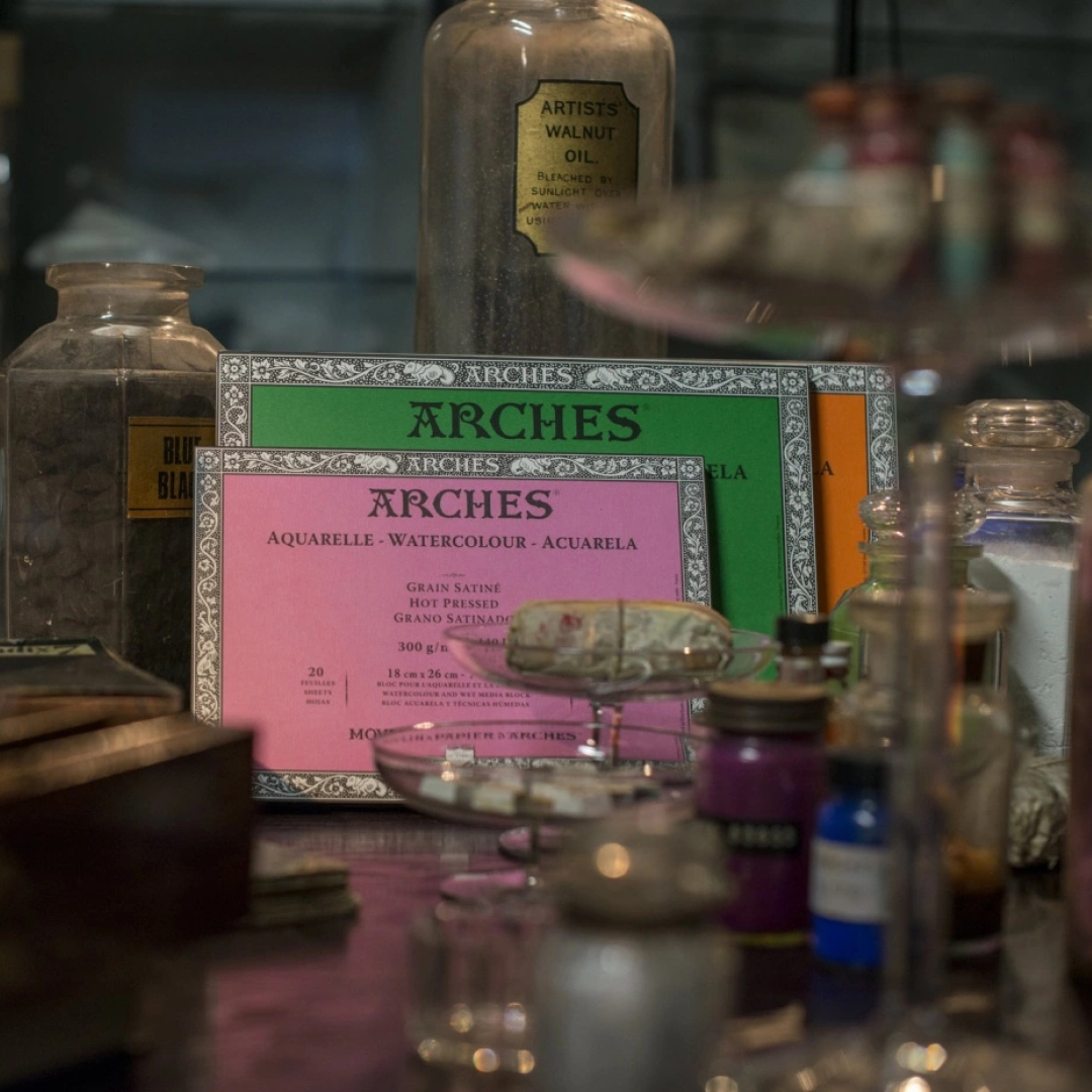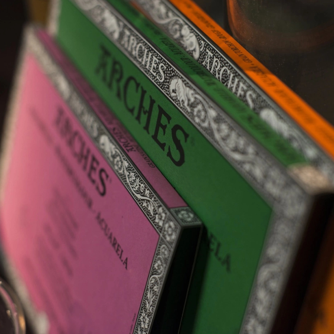 Bakom pappret står det anrika franska pappersbruket Arches, grundat redan 1492. Med en lång tradition av hantverk och kvalitet har Arches blivit ett självklart val för konstnärer världen över som söker papper med pålitlig prestanda och tidlös känsla.