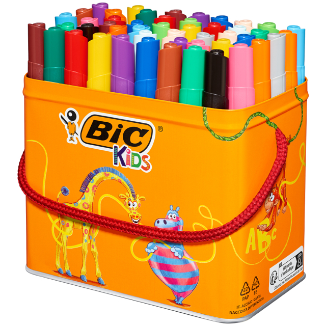Träfria färgblyertspennor från BIC! Färgblyertspennor som är bittåliga och inte ger vassa och farliga flisor om de bryts av. Pennkroppen har ränder i pennas färg.