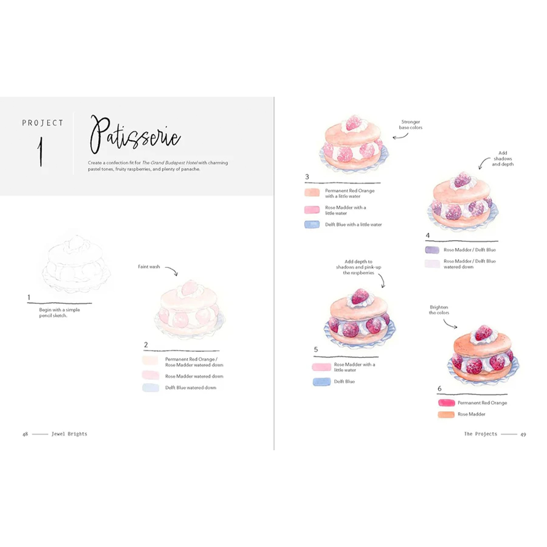 Konstnären Katie Putt guidar genom enkla steg-för-steg-instruktioner till 30 små mästerverk. Var och en av bokens 10 kapitel utgår från en unik trefärgspalett, från klara juvelfärger till lugna, skandinaviskt inspirerade toner. Allt som behövs för att komma igång är tre “rena” färger. Med dessa lär man sig att blanda fram en förvånansvärt bred variation av nyanser – alla färger som behövs för att slutföra de tre lättföljda akvarellprojekten i varje kapitel, som spänner från djur, blommor och växter till bakverk och mycket mer.