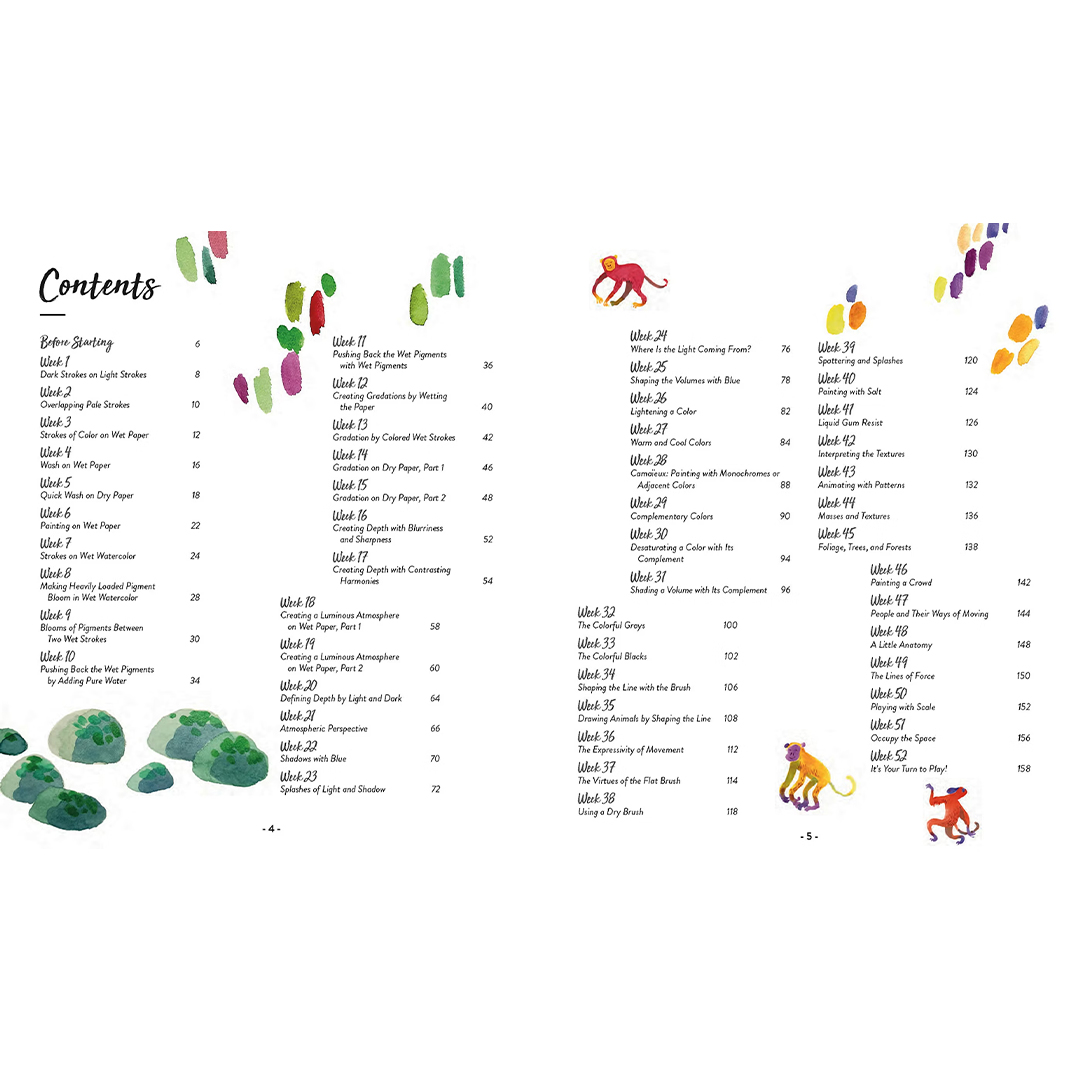 Konstnären och textildesignern Lou Ripoll tar nybörjare med på en förtrollande akvarellresa med 52 projekt för hela året, där mjuka laveringar och livfulla färger får liv.
