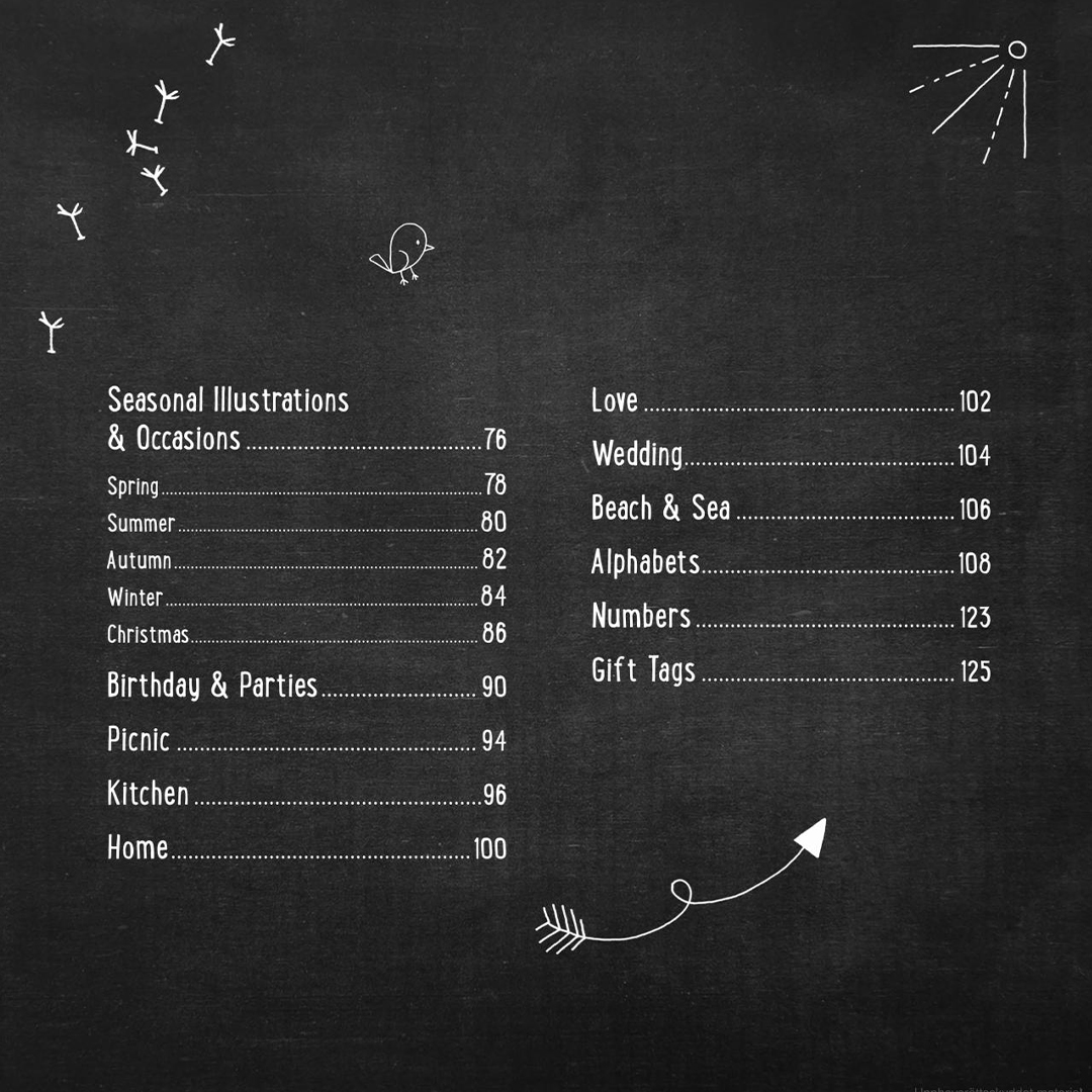 En mängd fantasifull grafik för speciella tillfällen inkluderar design för födelsedagar, bröllop, helgdagar och alla fyra årstiderna. Kalligrafer, hantverkare och illustratörer samt alla som vill sätta lite guldkant på sina texter kommer att uppskatta denna fantasifulla inspirationskälla.