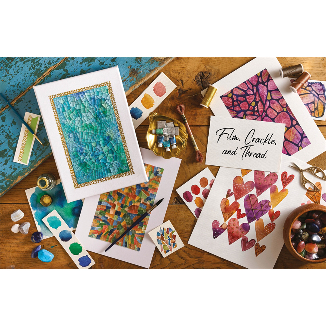 Följ flödet: Slappna av i processen och låt akvarellen naturligt flyta och samlas för att forma dina kompositioner, och lägg sedan till mixed media-detaljer för att ta dem till nästa nivå.