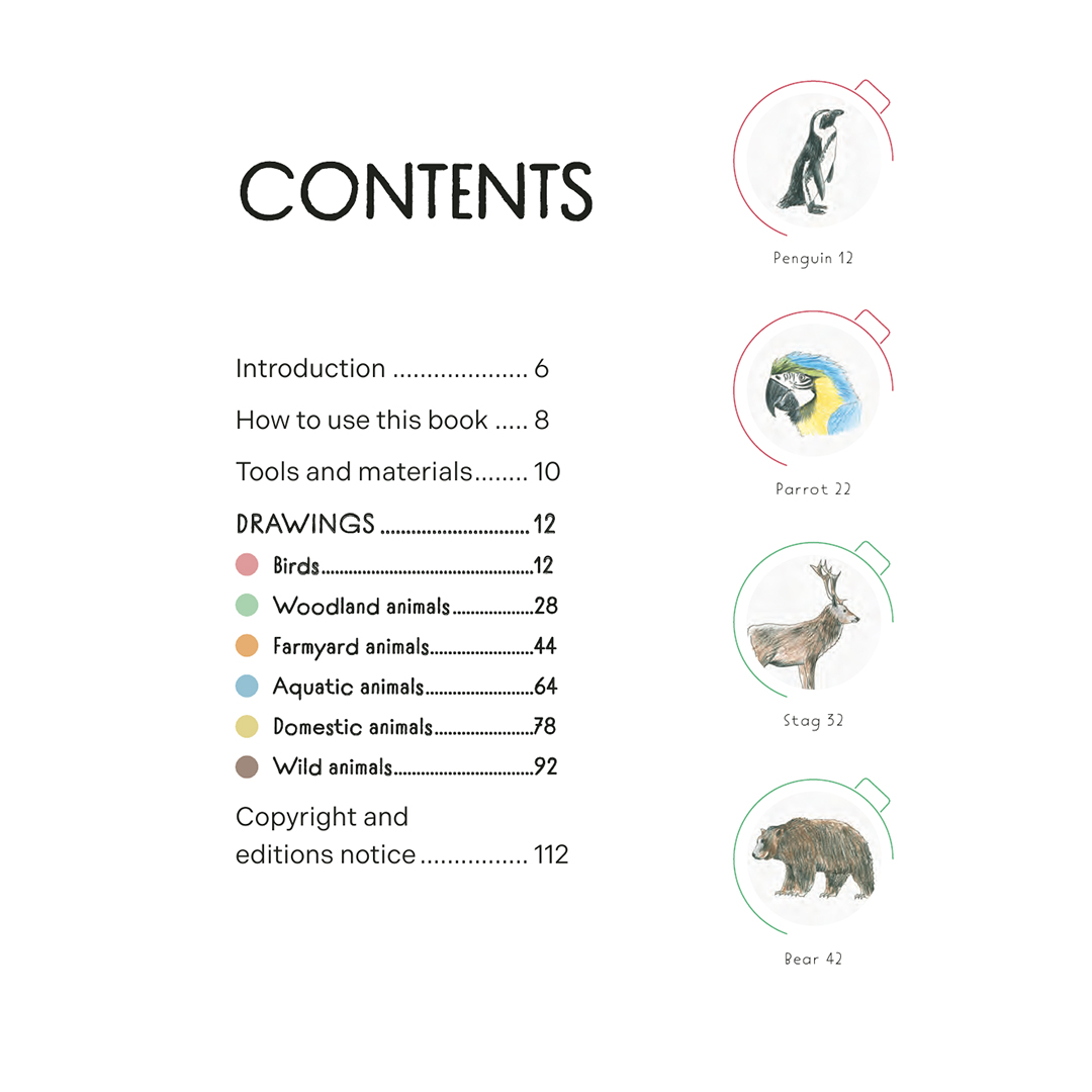 Rita alla sorters varelser, stora som små, inklusive skogs-, lantgårds-, vattenlevande, tama och vilda djur med hjälp av denna imponerande enkla och lättföljda bok.
