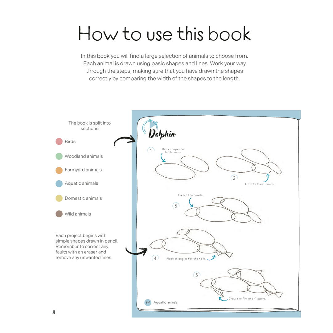 Den här boken passar perfekt för nybörjare som aldrig har ritat tidigare och vill ha en lätt guide till att rita sina favoritdjur; den är också ett utmärkt inspirationsmaterial för mer erfarna illustratörer som söker skissidéer och vill observera och återskapa olika arters karaktär, hållning och energi. Allt du behöver är 10 minuter åt gången!