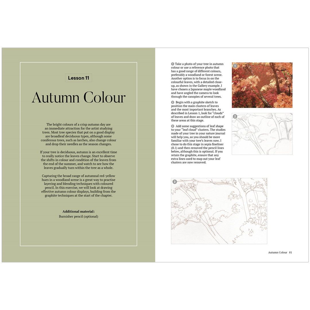 Oavsett årstid eller väder inspirerar How to Draw a Tree dig att se naturens detaljer med nya ögon – och att fånga dess skiftande skönhet direkt i din skissbok.