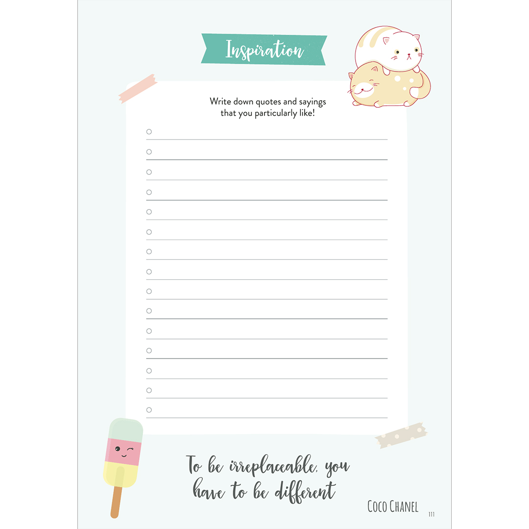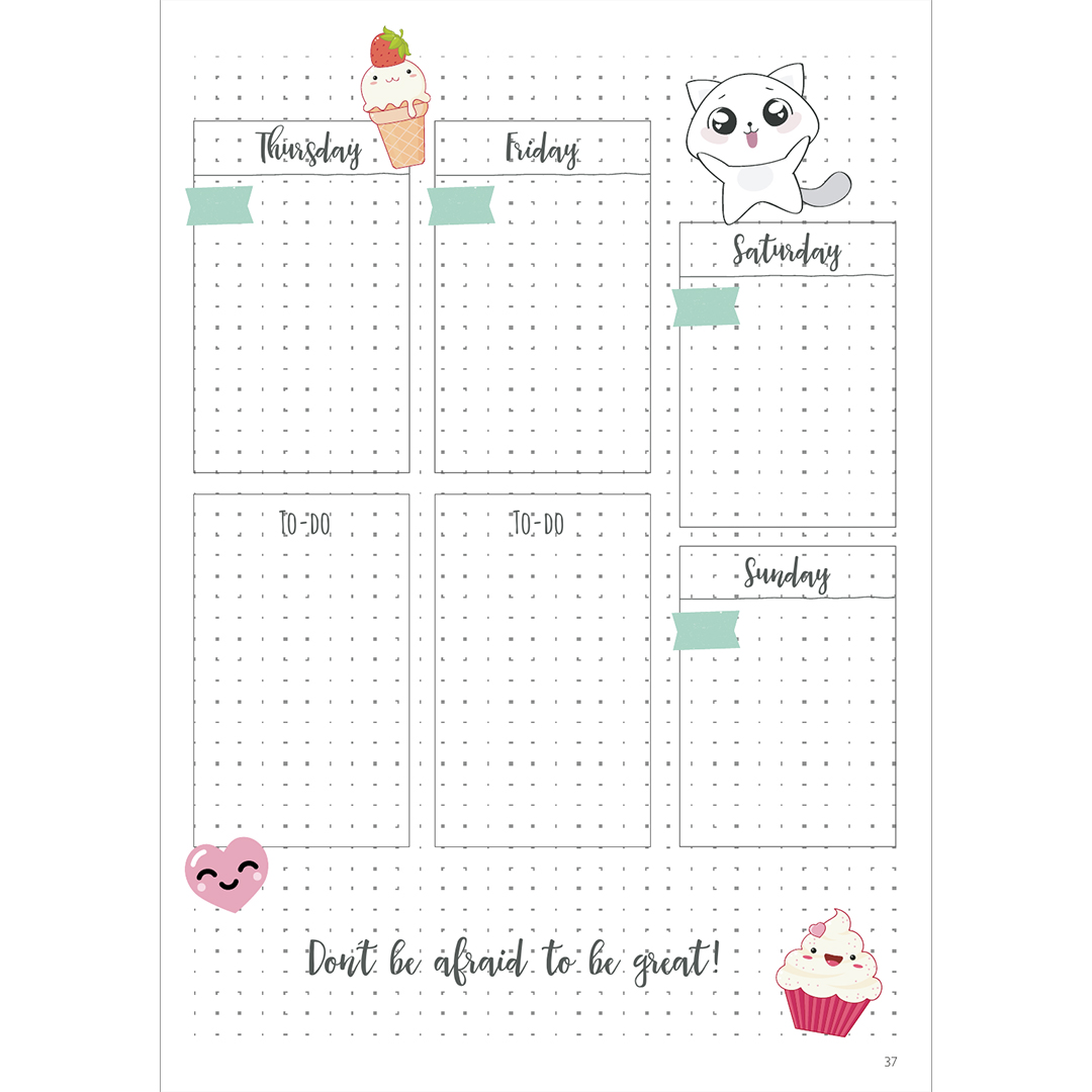 En Bullet Journal kan användas som kalender, dagbok, organisatör, vanetracker eller allt på en gång. Men alla har inte tid eller idéer för att designa sidorna själva. My Kawaii Journal är den perfekta lösningen, med färdigdesignade sidor med bedårande konst som du kan fylla med listor, mål, planer, hemligheter och drömmar.