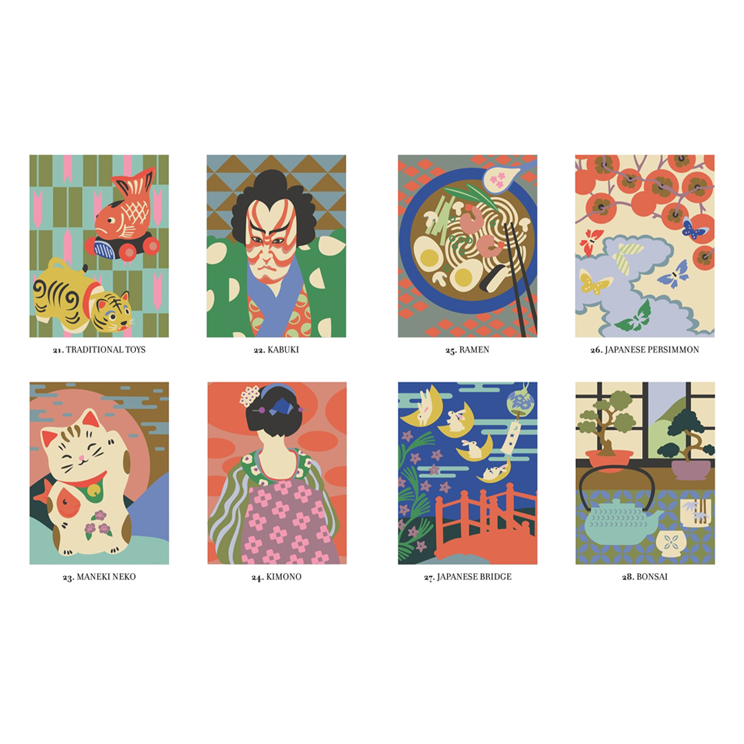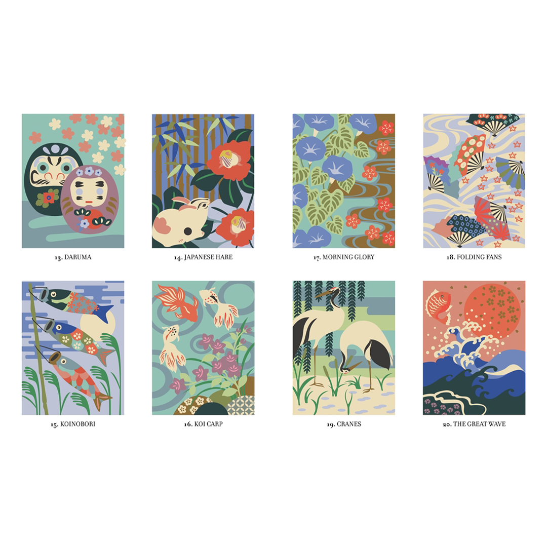 - Var och en av de 30 nya och moderna illustrationerna innehåller en färgstark bild med japanskt tema som framträder när du färglägger efter nummer.