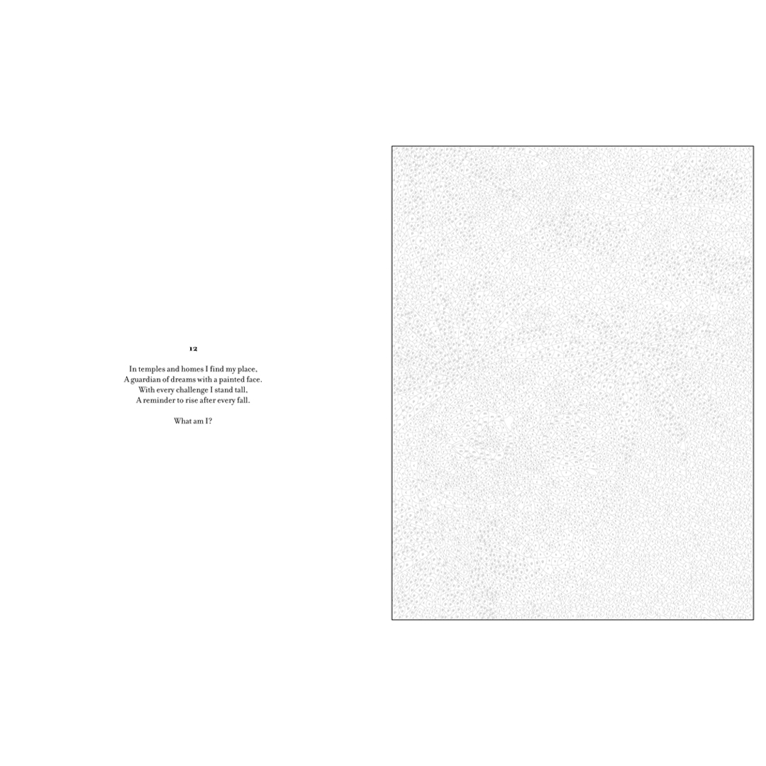 - För extra nöje innehåller varje illustration en gåta som du kan fundera på medan du väcker bilden till liv. Upptäck svaren i både ord och bild i slutet av boken.