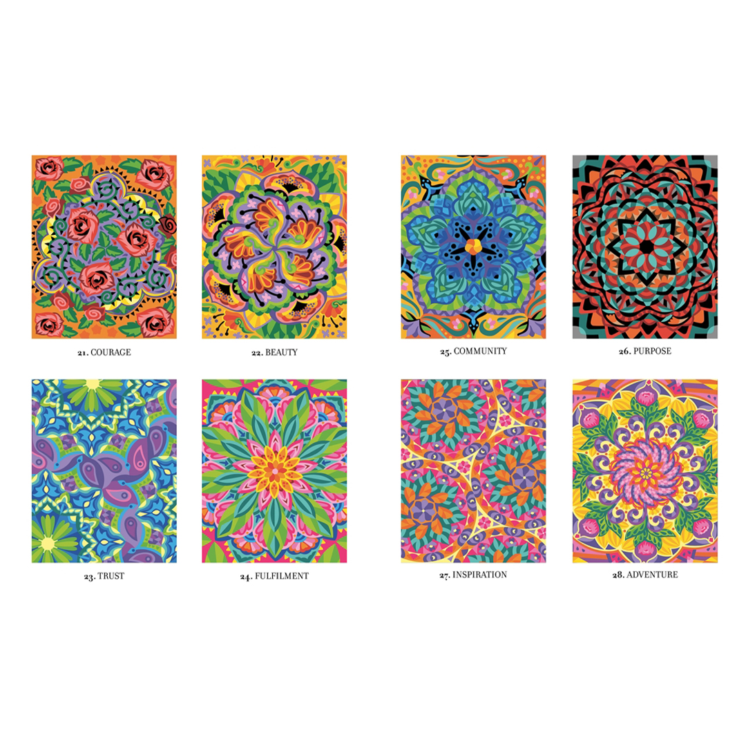 - Var och en av de 30 nya och moderna illustrationerna innehåller en färgstark mandala som framträder när du färglägger efter nummer.