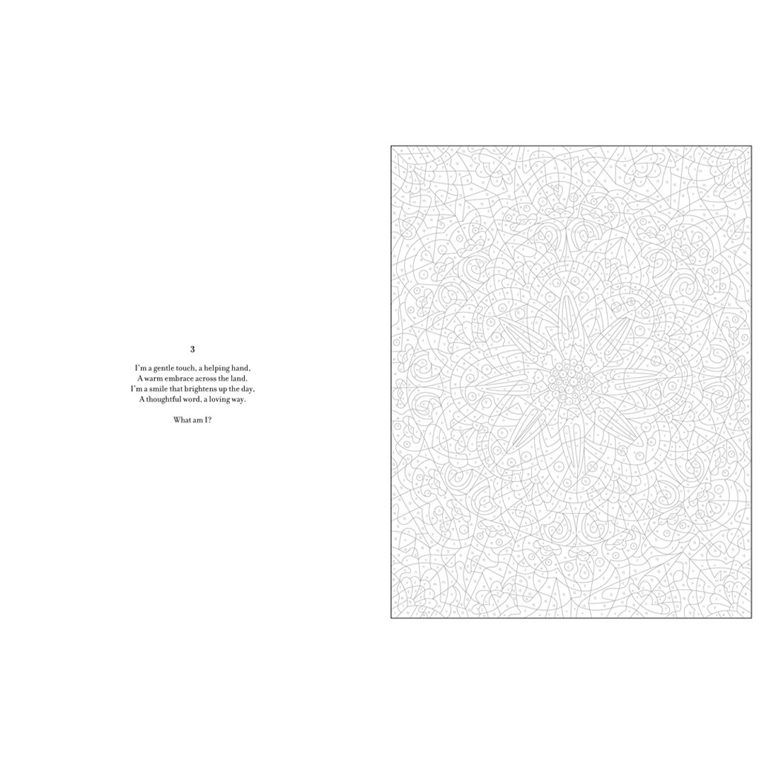 Den senaste trenden inom färgläggning, som kombinerar glädjen i att färglägga med spänningen i en överraskning! Var och en av de 30 moderna illustrationerna innehåller en mandala som avslöjas när du färglägger efter nummer, samt en gåta att fundera över medan du väcker bilden till liv. En engagerande paus för färgläggningsentusiaster på alla nivåer.