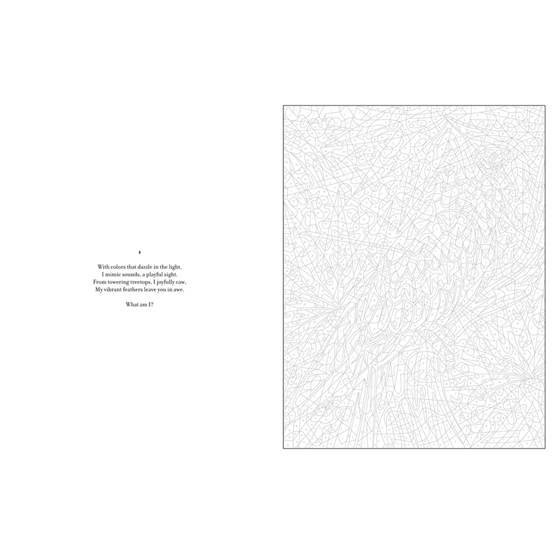 - För extra nöje innehåller varje illustration en gåta som du kan fundera på medan du väcker bilden till liv. Upptäck svaren i både ord och bild i slutet av boken.
