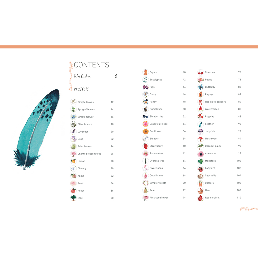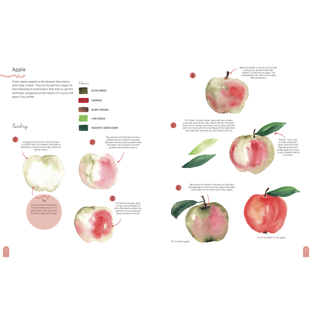 Genom 50 enkla akvarellprojekt – med exotiska frukter, färgsprakande insekter och luftiga, eterska blommor – lär denna nybörjarvänliga bok dig att släppa loss och följa med strömmen när du målar. Varje projekt tar du dig igenom i bara sex till åtta enkla steg, med ett litet urval färger och några få tydliga, lättföljda akvarelltekniker.