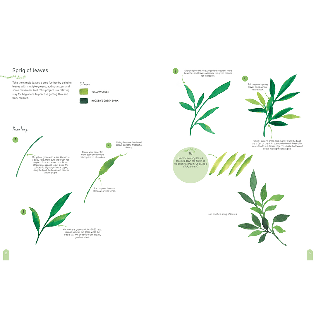 - Ingen förkunskap om akvarelltekniker är nödvändig: Boken innehåller en kort lista över verktyg och material du behöver för att komma igång, samt en klar och informativ guide till de grundläggande teknikerna.