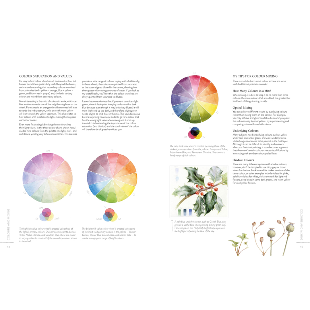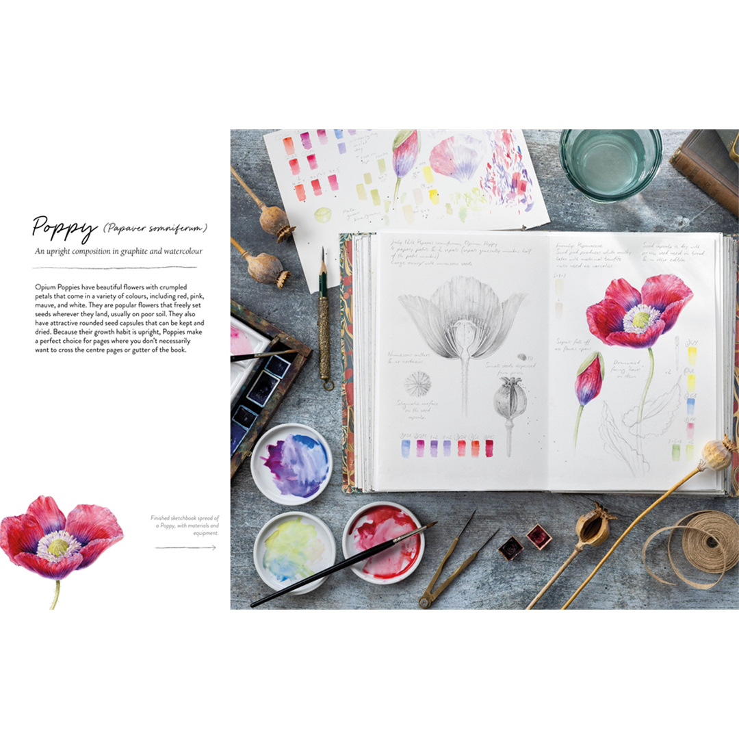 I denna omfattande bok, fylld med steg-för-steg-instruktioner, delar Dianne generöst med sig av sin kunskap – från hur du väljer den perfekta skissboken (eller till och med gör din egen med enkla bokbinderitekniker), till en fördjupad utveckling av skissbokssidor, med fokus på innehåll och komposition, vilka delar av växten som bör inkluderas, hur du hanterar olika motiv och hur du ger liv åt dina arbeten med enkla akvarelltekniker.