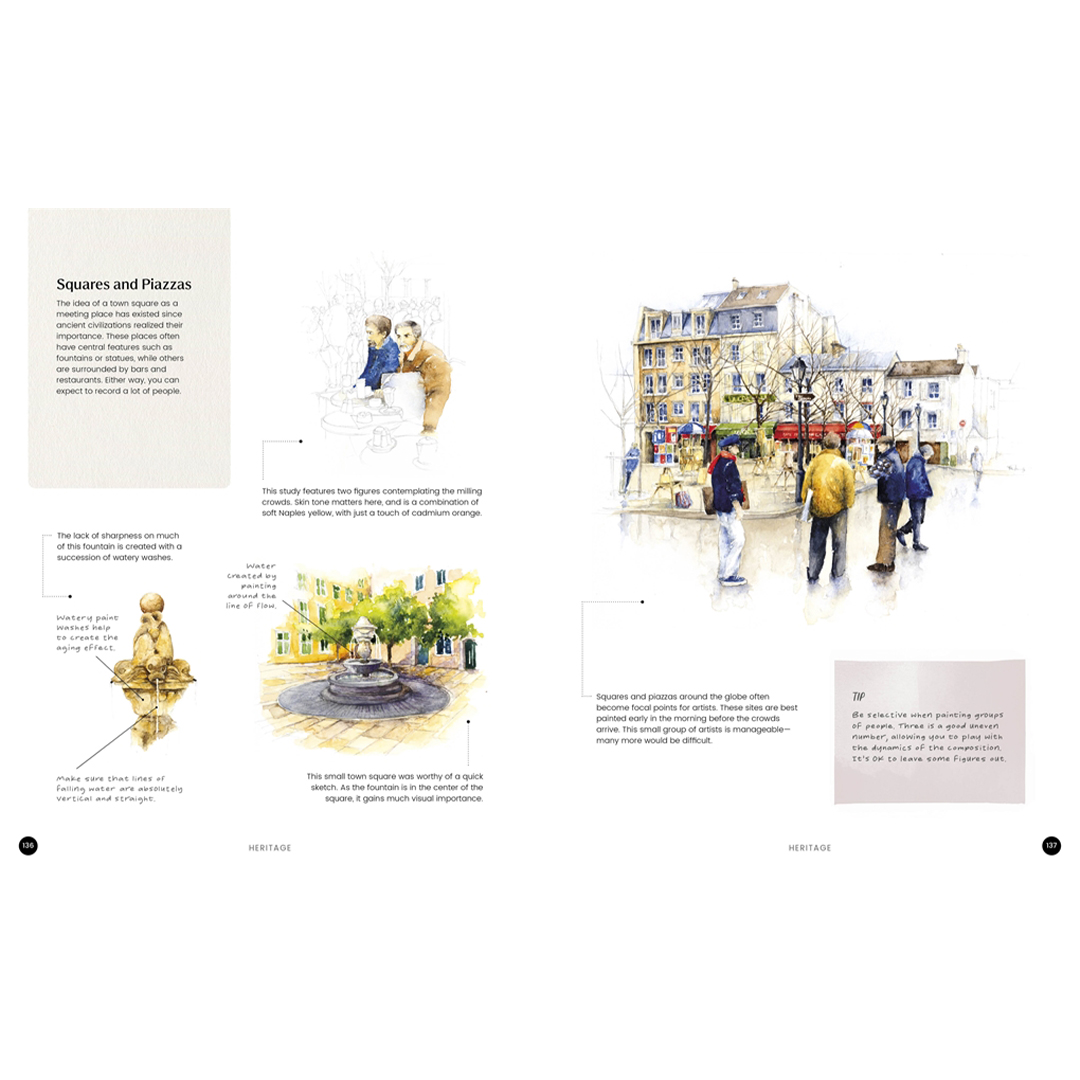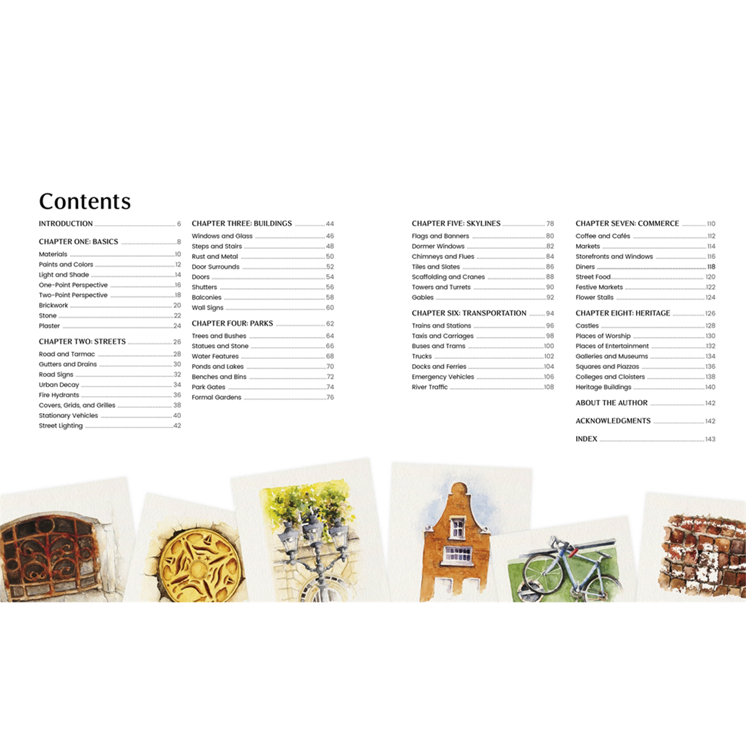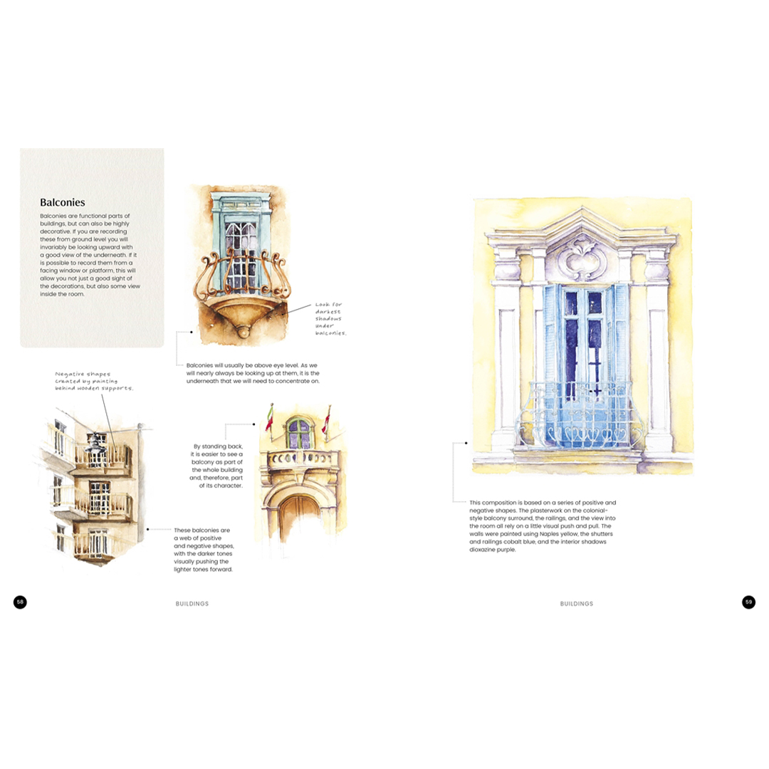 En briljant ny handbok med praktiska tekniker för akvarellkonstnärer som arbetar med urbana landskapsmotiv.