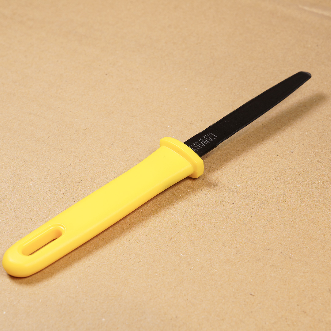 Kartongkniv med dubbeltandat non-stick blad, designad för att öppna förpackningar snabbt och säkert. Det perfekta verktyget för lager, logistik, butiker - helt enkelt alla som hanterar kartonger dagligen.