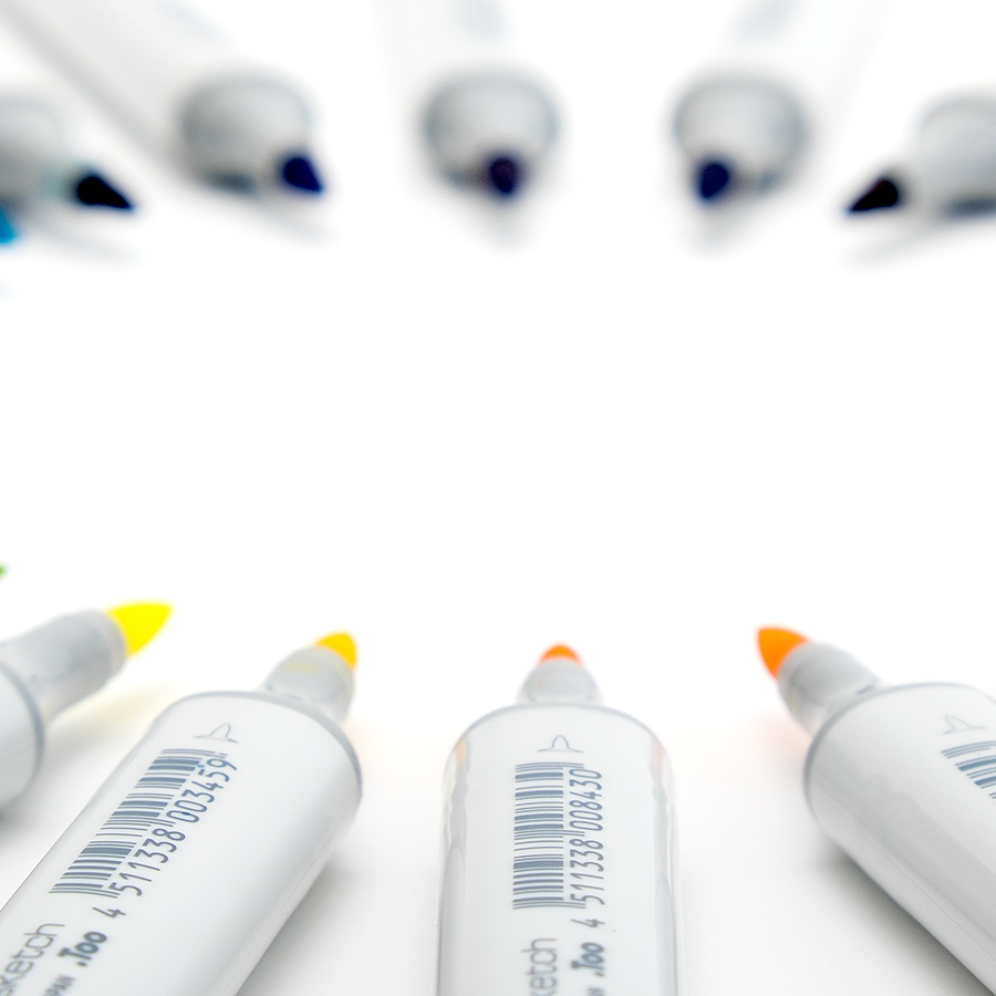 Copic Sketch markers i 24-set. Pennorna levereras i transparent förvaringslåda. Setet innehåller 24 olika färger.