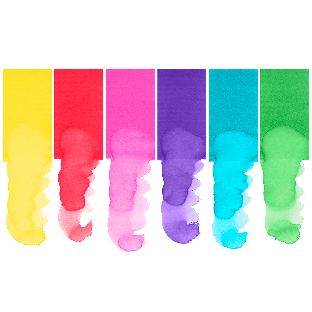 Bläcket är vattenbaserat, vilket innebär att det inte blöder igenom pappret, och vattenlösligt, vilket gör att det kan användas till att skapa akvarell-effekter på papper.