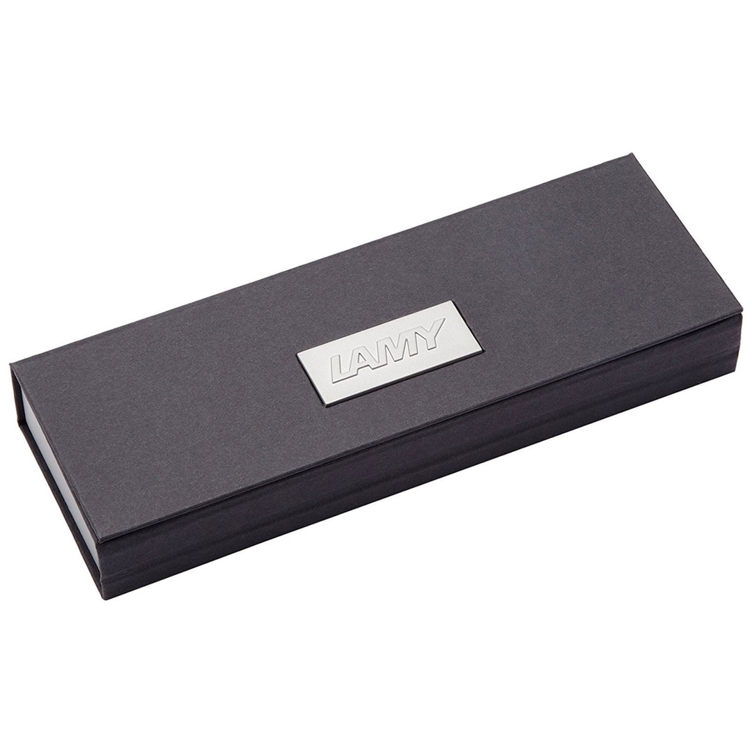 Spets i 14 karats guld, delvis platinapläterad. Svart högglansig pennkropp. Utbytbart grepp och skruvlock. Massivt, fjäderbelastat klips. Levereras med Lamy T 10 bläckpatron i blått. Går även att använda tillsammans med Lamy Converter Z 27 för användning med bläck på flaska.