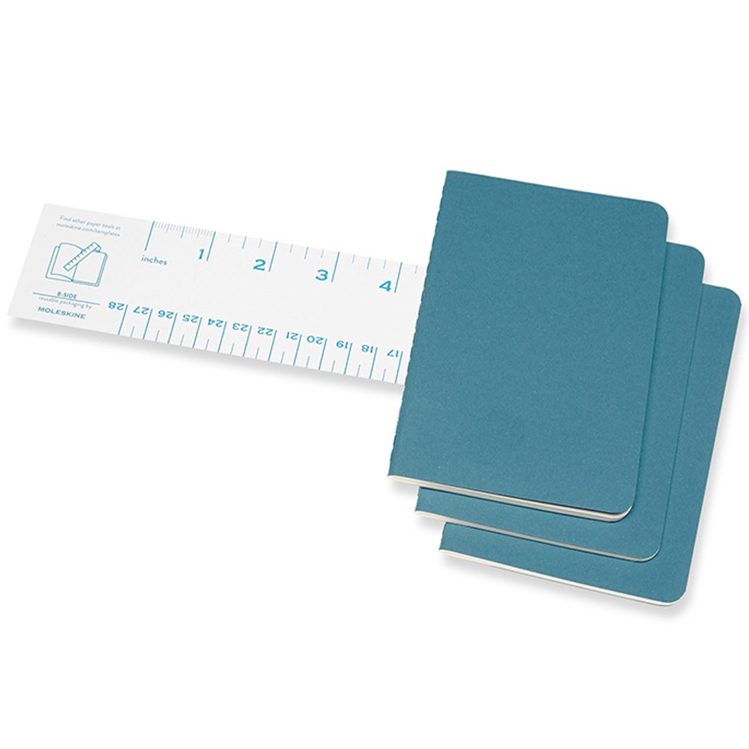 Set om 3 st anteckningsböcker i Pocket-storlek (9 x 14 cm) från italienska Moleskine. Varje bok innehåller 64 sidor, varav de sista 16 är uttagbara. Sydd bindning och innerficka. Syrafritt papper av hög kvalitet!