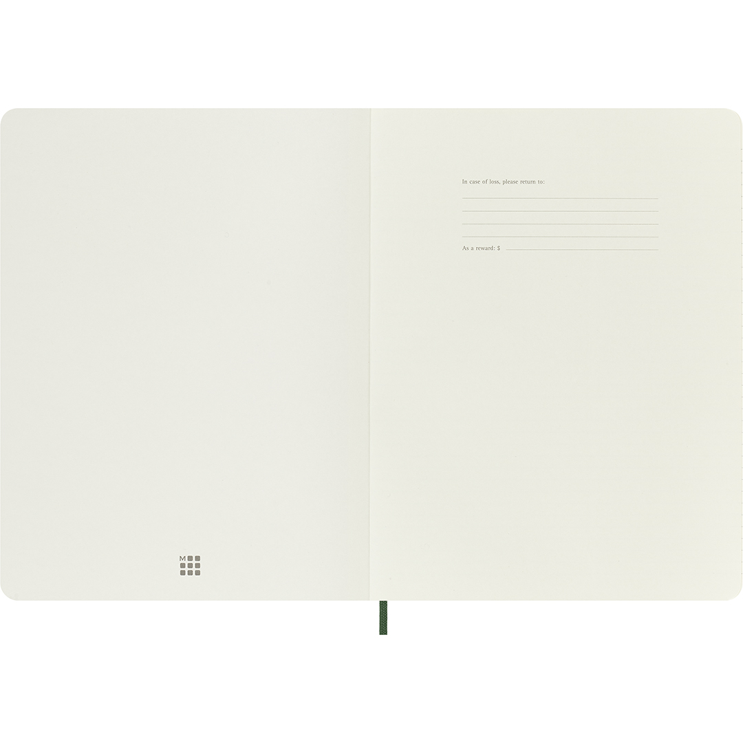 Anteckningsbok med mjukt flexibelt omslag i XL-storlek (19 x 25 cm) från Italienska Moleskine. Anteckningsboken innehåller 192 sidor och har en expanderbar innerficka samt elastiskt band som håller boken stängd när den inte används. Det elfenbensfärgade pappret är FSC-certifierat, syrafritt och av hög kvalitet!