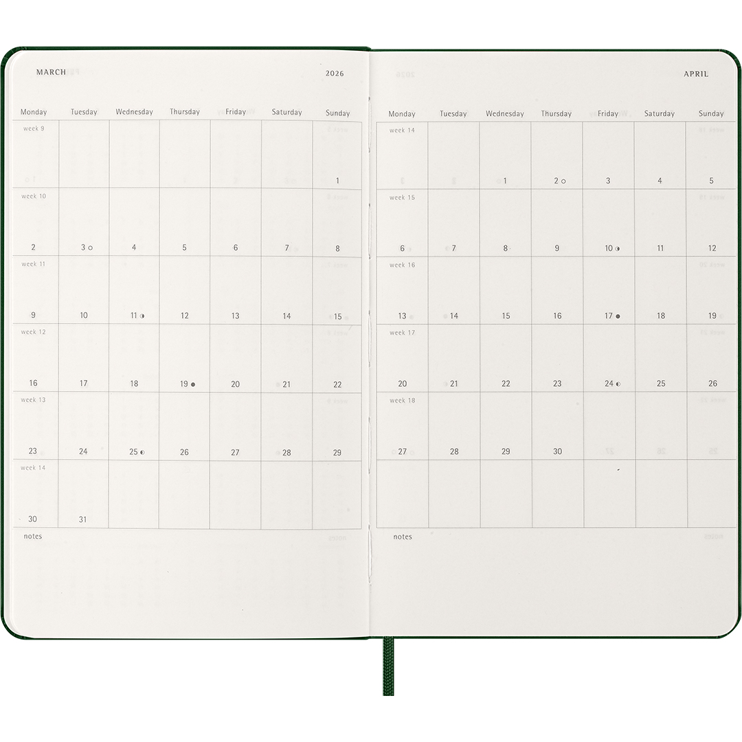 Moleskine är ett globalt erkänt varumärke som tillverkar några av marknadens bästa anteckningsböcker och kalendrar, inspirerade av den klassiska modellen som användes av storheter som Van Gogh, Picasso och Hemingway. Kombinationen av tidlös design och högsta kvalitet gör kalender till ett måste för alla som värdesätter funktion och stil.