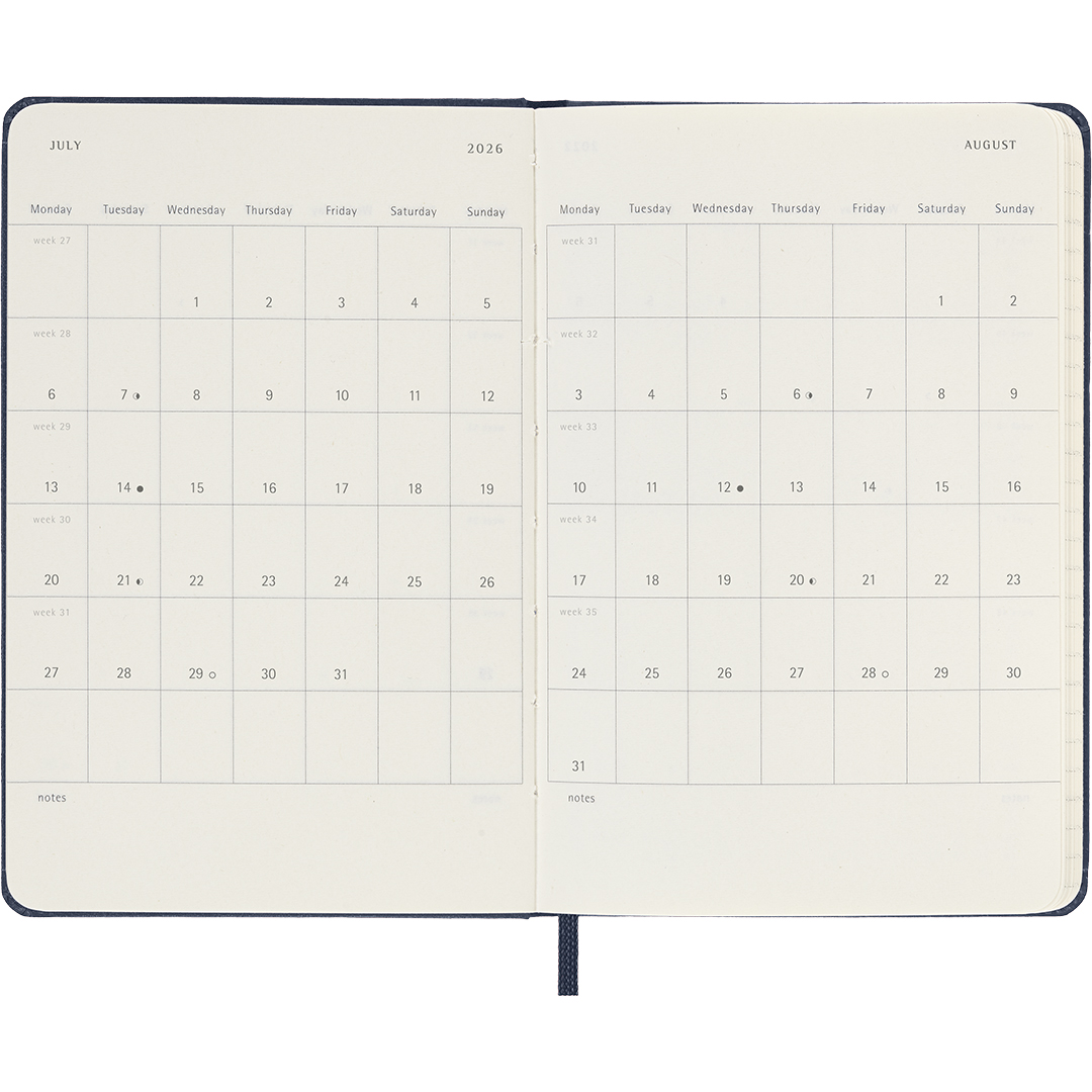 Moleskine är ett globalt erkänt varumärke som tillverkar några av marknadens bästa anteckningsböcker och kalendrar, inspirerade av den klassiska modellen som användes av storheter som Van Gogh, Picasso och Hemingway. Kombinationen av tidlös design och högsta kvalitet gör kalender till ett måste för alla som värdesätter funktion och stil.