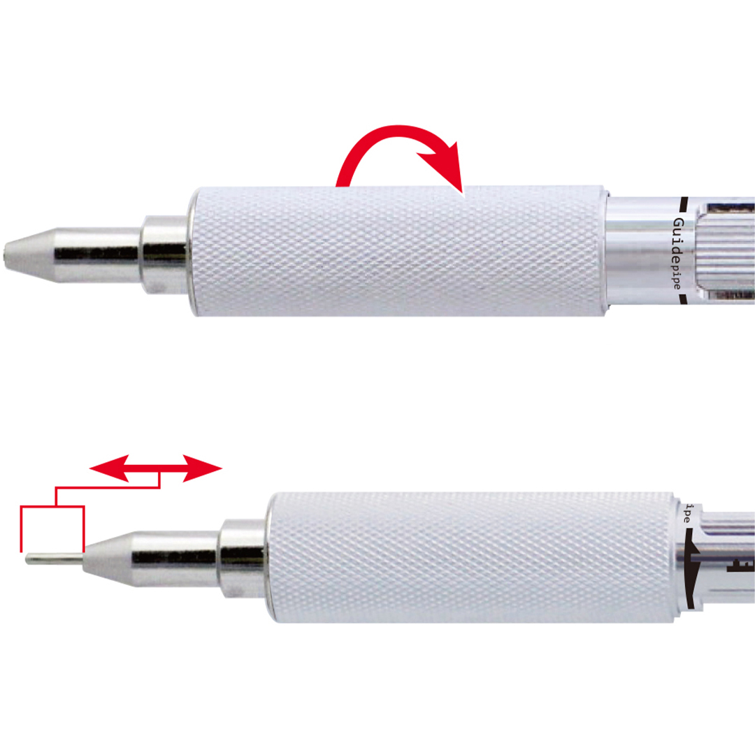 • Justerbar mängd bly per klick (0,2 mm – 2,0 mm)