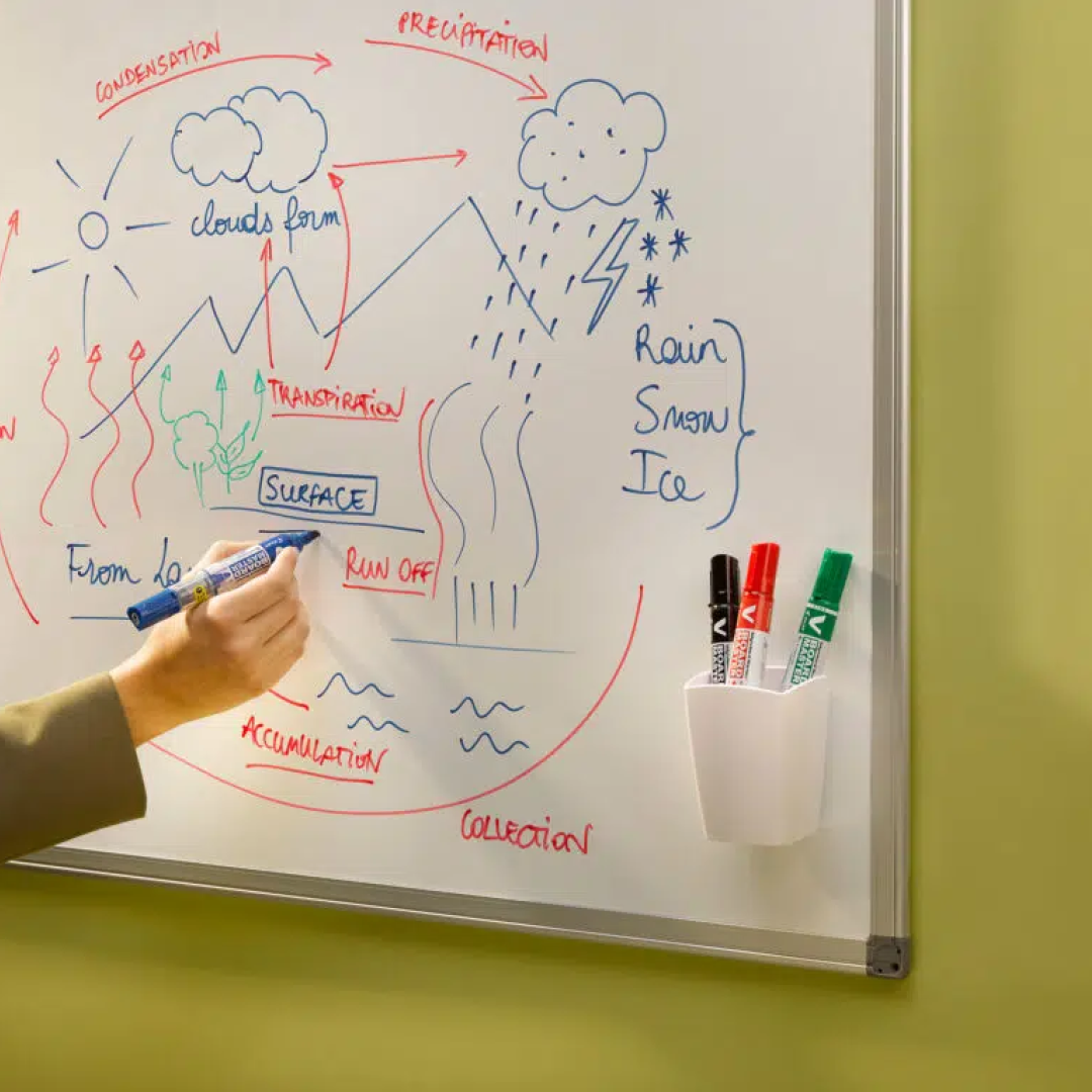 Påfyllningsbar whiteboardpenna av 92% återvunnen plast med ny bläckteknologi som ger jämnt flöde hela livslängden – utan pumpande!