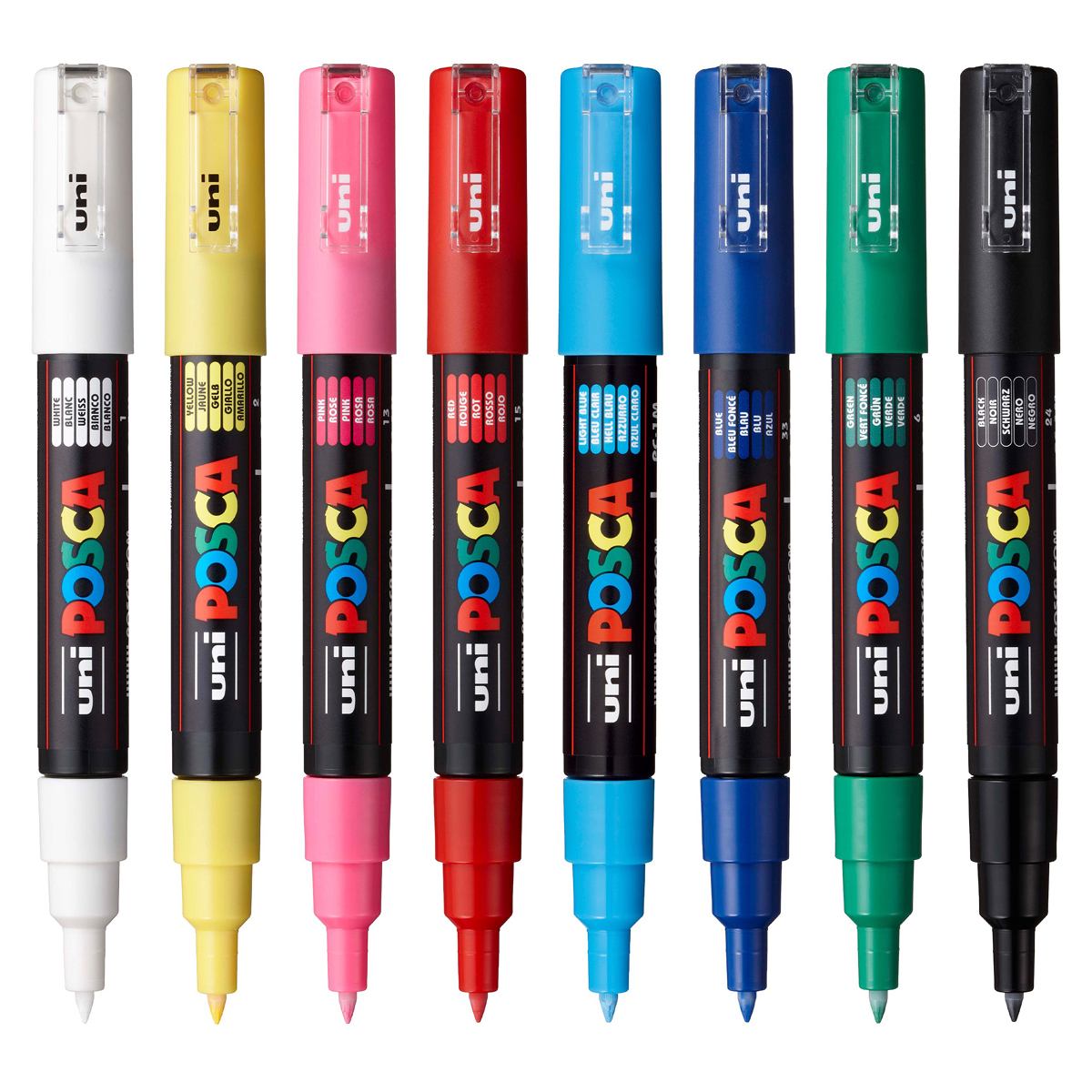Setet innehåller 8 stycken Posca PC-1MC. Färger: Black, Green, Light Blue, Blue, Red, Pink, Yellow, White.