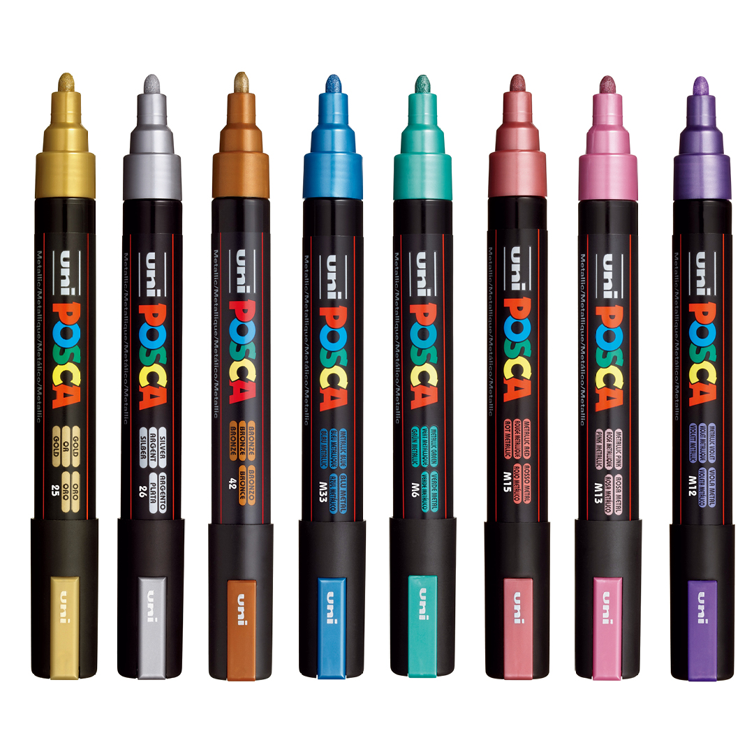 Detta set innehåller 8 pennor i storlekarna 5M, 1.8 - 2.5 mm. Färgerna som ingår är: Metallic Violet, Metallic Pink, Metallic Red, Metallic Green, Metallic Blue, Bronze, Silver, Gold.