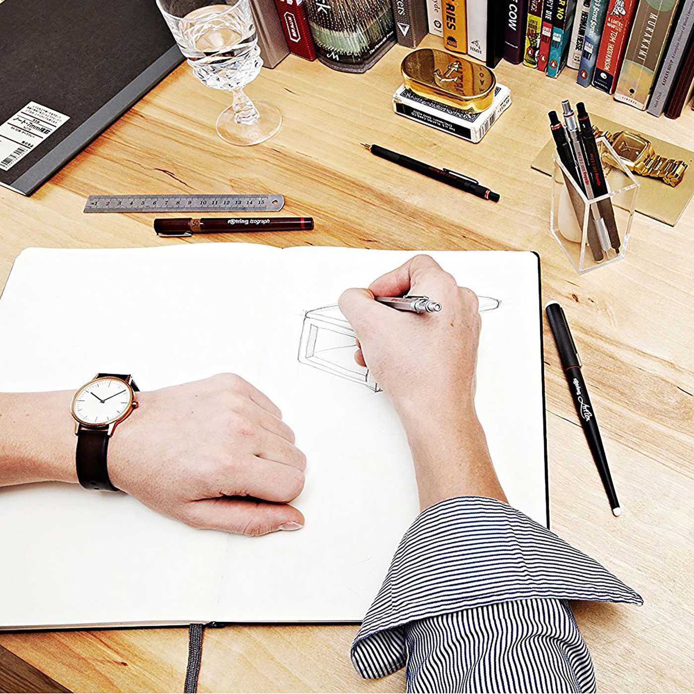 Rotrings vidareutveckling av sina klassiska stiftpennor. Stödröret i Rotring 800 är fast - vilket ger 100 % precision - men samtidigt infällbart med vridmekanism.
