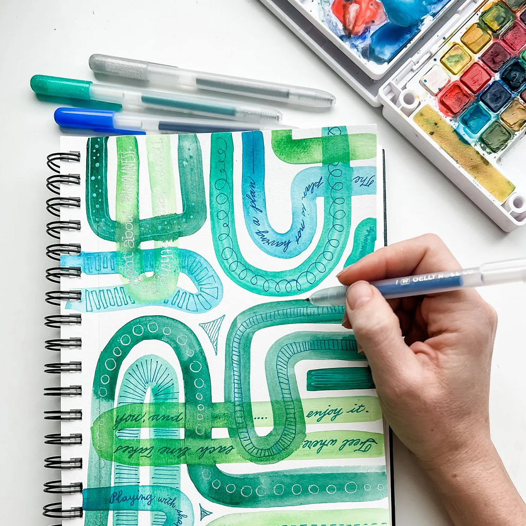 Den metalliska gelbläckformulan är täckande och glansig, torkar snabbt och ger en fantastisk färgeffekt som syns tydligt på både ljusa och mörka ytor. Oavsett om du skriver dagbok, skissar eller skapar kreativa projekt levererar den precisa spetsen skarpa, rena linjer – varje gång.