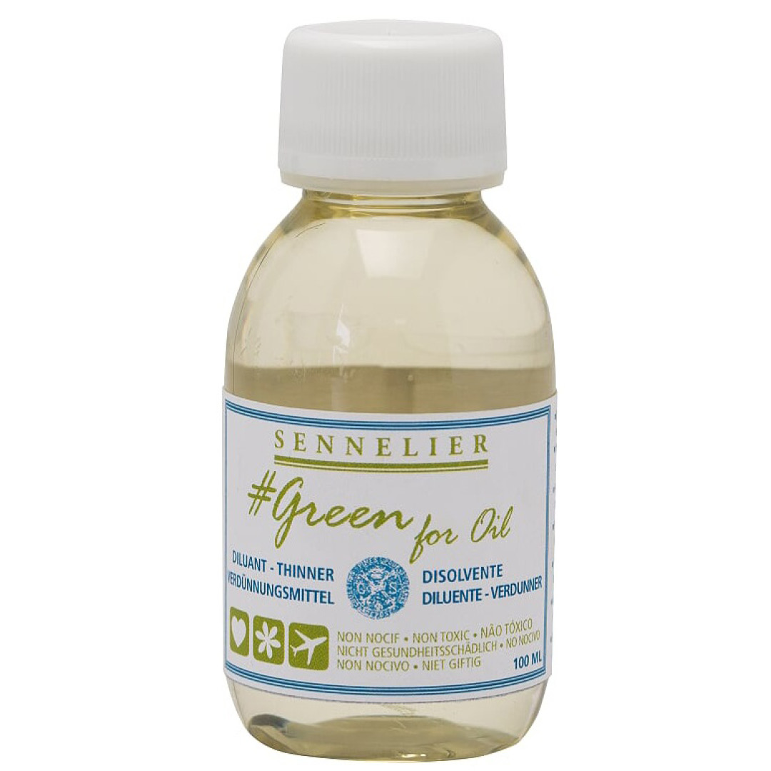 Green For Oil Thinner tillhör en modern och miljövänlig serie oljemedier och hjälper till att förtunna oljefärgerna. Med sin minimala miljöpåverkan har mediet samma funktion som traditionella oljemedier.