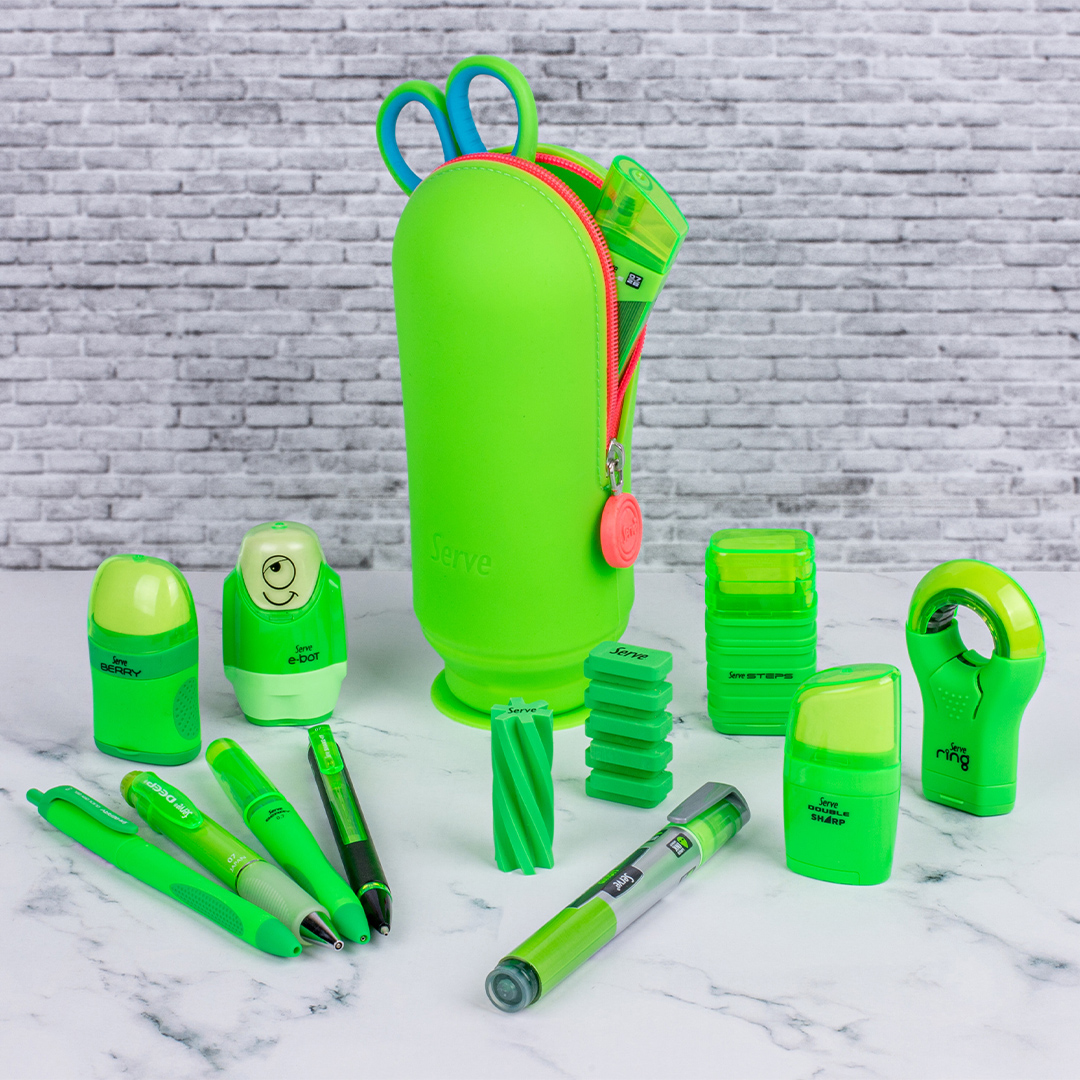 Rymmer ca 22 pennor (beroende på pennornas storlek).
