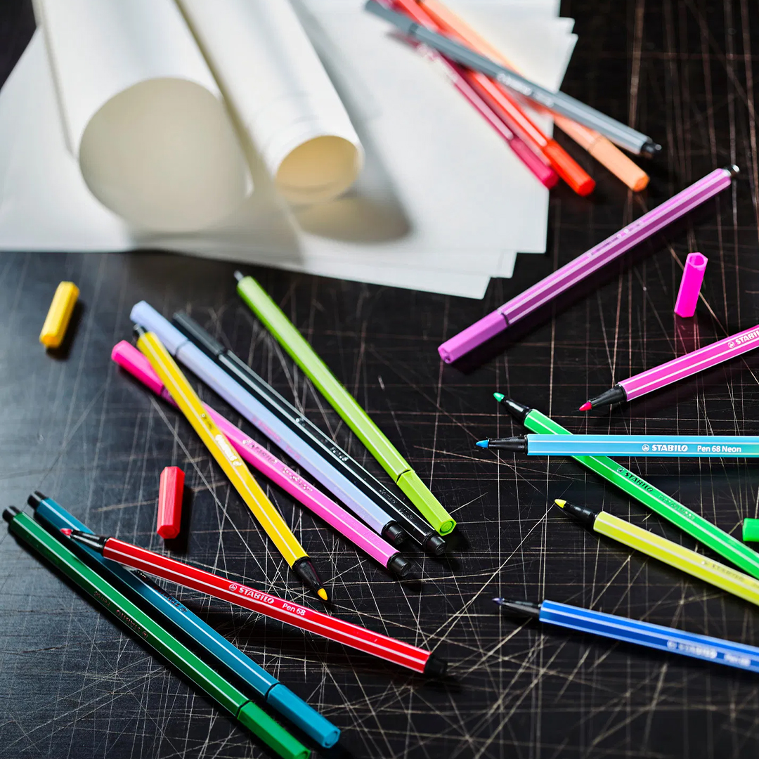 Det finns många olika set med Stabilo Pen 68 i starka, livfulla färger.