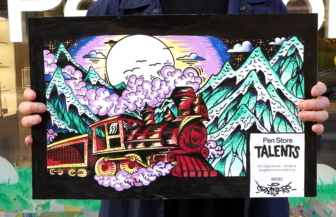 Eftersom verket skulle visas i tunnelbanan kändes det naturligt att arbeta med ett tåg som motiv. Jag är själv uppvuxen längs gröna linjen, så jag har många minnen kopplade till tunnelbanan, vilket gjorde det extra kul att medverka.