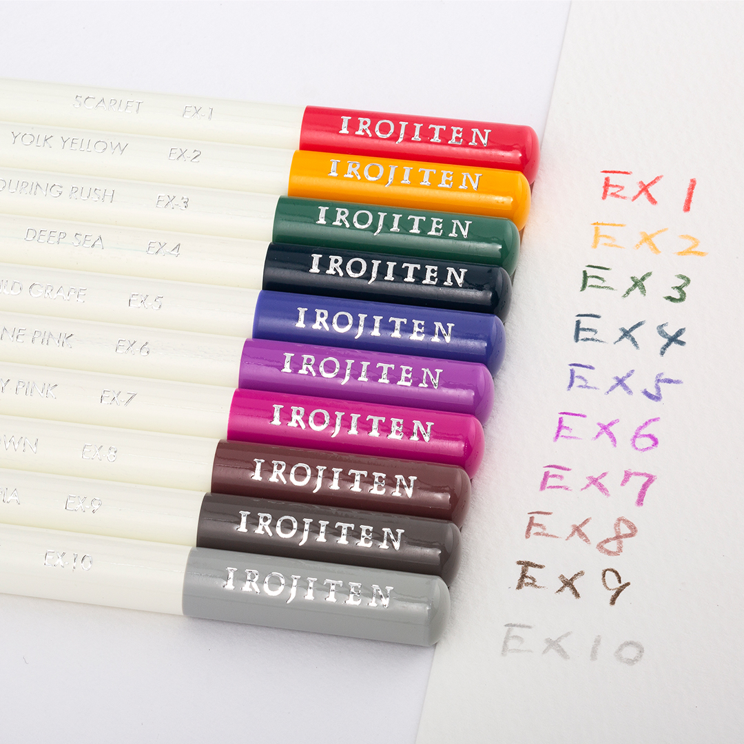 Irojiten finns i 100 nyanser och de passar perfekt sig väl för t.ex. illustrationer, skisser, bullet journaling och mandalas. De har en elegant och tidlös design och kan p.g.a. sin höga kvalitet vässas till en skarp och exakt spets.