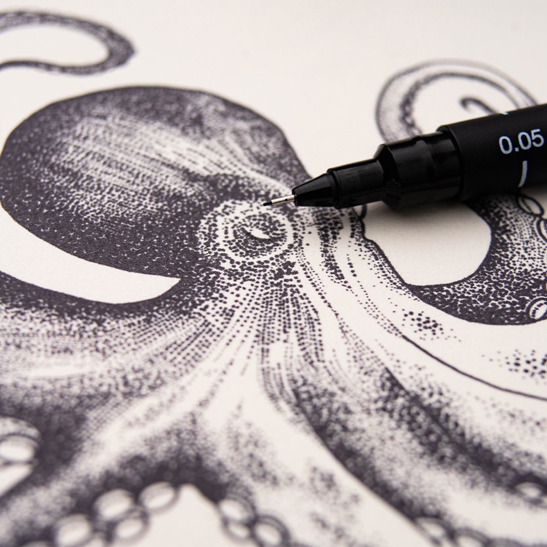 Uni Pin Fine Line har ett pigmentbaserat bläck som är vatten- och ljusbeständigt, vilket säkerställer att konstverket håller hög kvalitet över tid. Det högkvalitativa bläcket möjliggör även att det kan användas tillsammans med både akvarellfärger och alkoholbaserade markers utan att linjerna suddas ut.