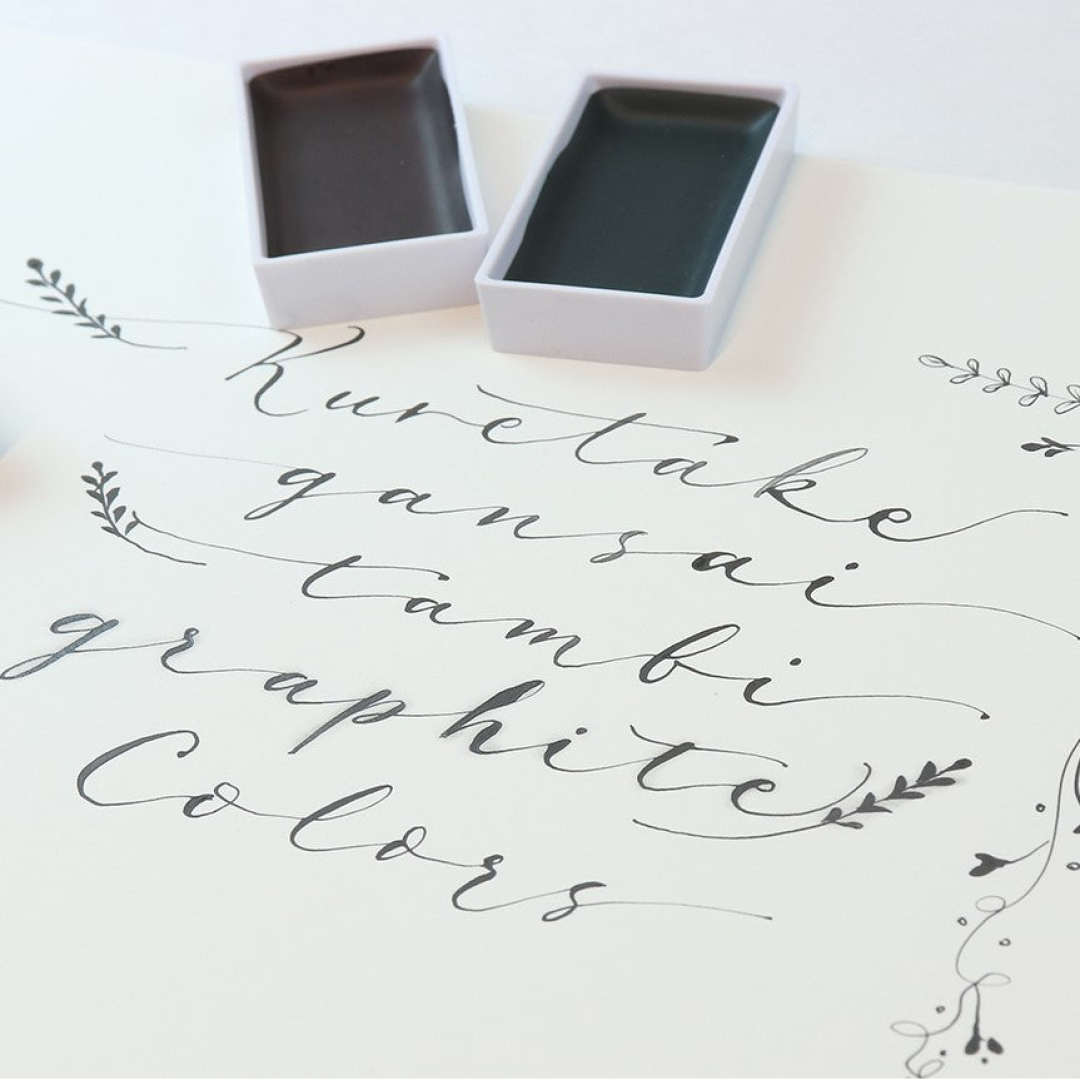Handgjorda japanska akvareller i ett set med 6 olika färger. Färgerna har en matt textur och finish för att efterlikna grafit så mycket som möjligt. När den matta färgen har torkat kan den poleras för att få en metallisk lyster.